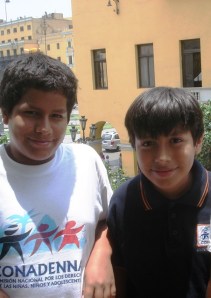 Antonny y Ronaldo (13 y 12 años respectivamente) forman parte del Consejo Nacional por los Derechos de los Niños, Niñas y Adolescentes de Perú (CONADENNA) http://www.conadenna.org.pe/