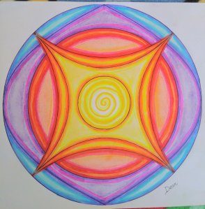 No tienes que incorporar materiales tridimensionales que ocupen grandes espacios. Todo está en tu mente. Pon musiquita, enciende un incienso o una vela y así estarás listo o lista. para crear. Mentalmente ubícate en el centro de tu propio mandala y siente el poder del espacio y de las intenciones que has puesto allí 🙂
